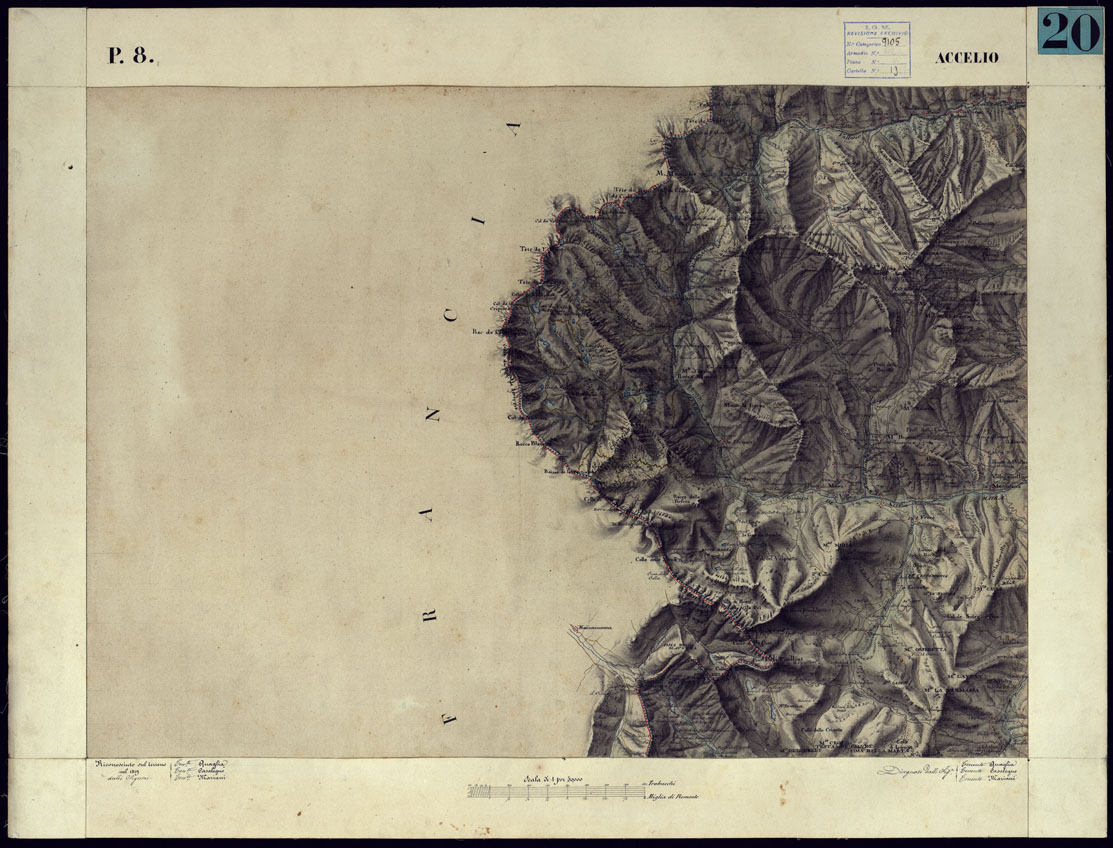 CARTA TOPOGRAFICA DEGLI STATI DI TERRA FERMA DI S.S.R.M. CARLO ALBERTO RE DI SARDEGNA FATTA DAL CORPO DELLO STATO MAGGIORE COMANDATO DAL TEN.TE GEN.LE B.NE DI MONTHOUX ALLA SCALA DI 1 50.000 1831 - FOGLIO P.8 ACCELIO.