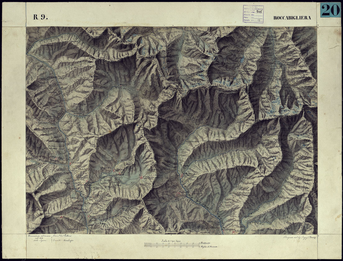 CARTA TOPOGRAFICA DEGLI STATI DI TERRA FERMA DI S.S.R.M. CARLO ALBERTO RE DI SARDEGNA FATTA DAL CORPO DELLO STATO MAGGIORE COMANDATO DAL TEN.TE GEN.LE B.NE DI MONTHOUX ALLA SCALA DI 1 50.000 1831 - FOGLIO R.9 ROCCABIGLIERA.