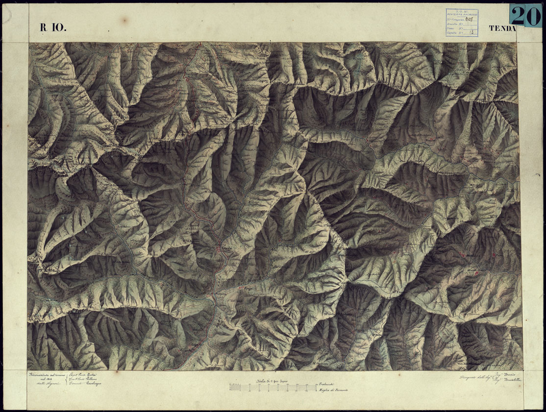 CARTA TOPOGRAFICA DEGLI STATI DI TERRA FERMA DI S.S.R.M. CARLO ALBERTO RE DI SARDEGNA FATTA DAL CORPO DELLO STATO MAGGIORE COMANDATO DAL TEN.TE GEN.LE B.NE DI MONTHOUX ALLA SCALA DI 1 50.000 1831 - FOGLIO R.10 TENDA.