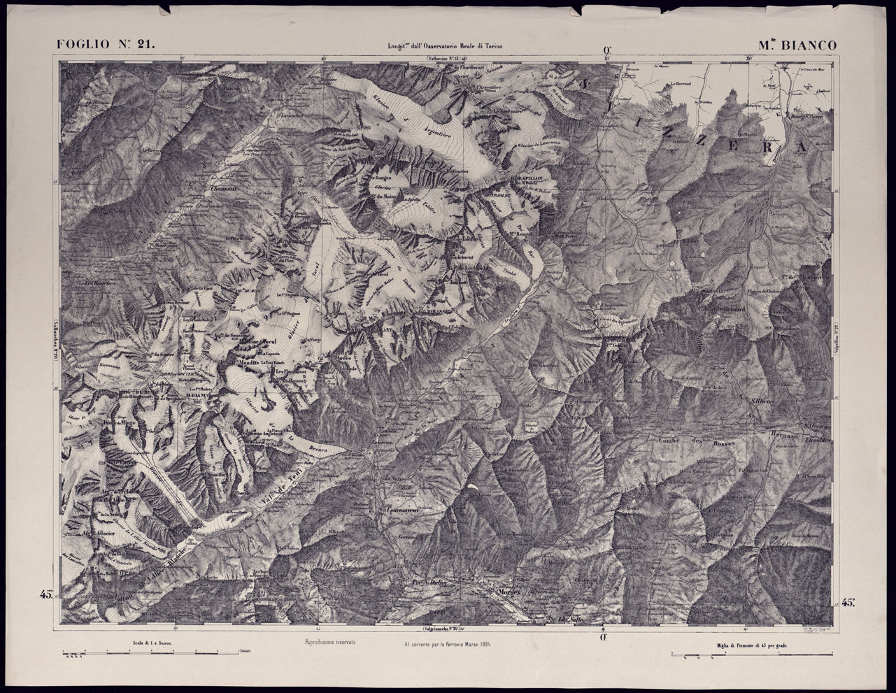 CARTA TOPOGRAFICA DEGLI STATI IN TERRAFERMA DI S.M. IL RE DI SARDEGNA ALLA SCALA DI 1 A 50.000 OPERA DEL CORPO REALE DELLO STATO MAGGIORE - FOGLIO N°21 - M. BIANCO