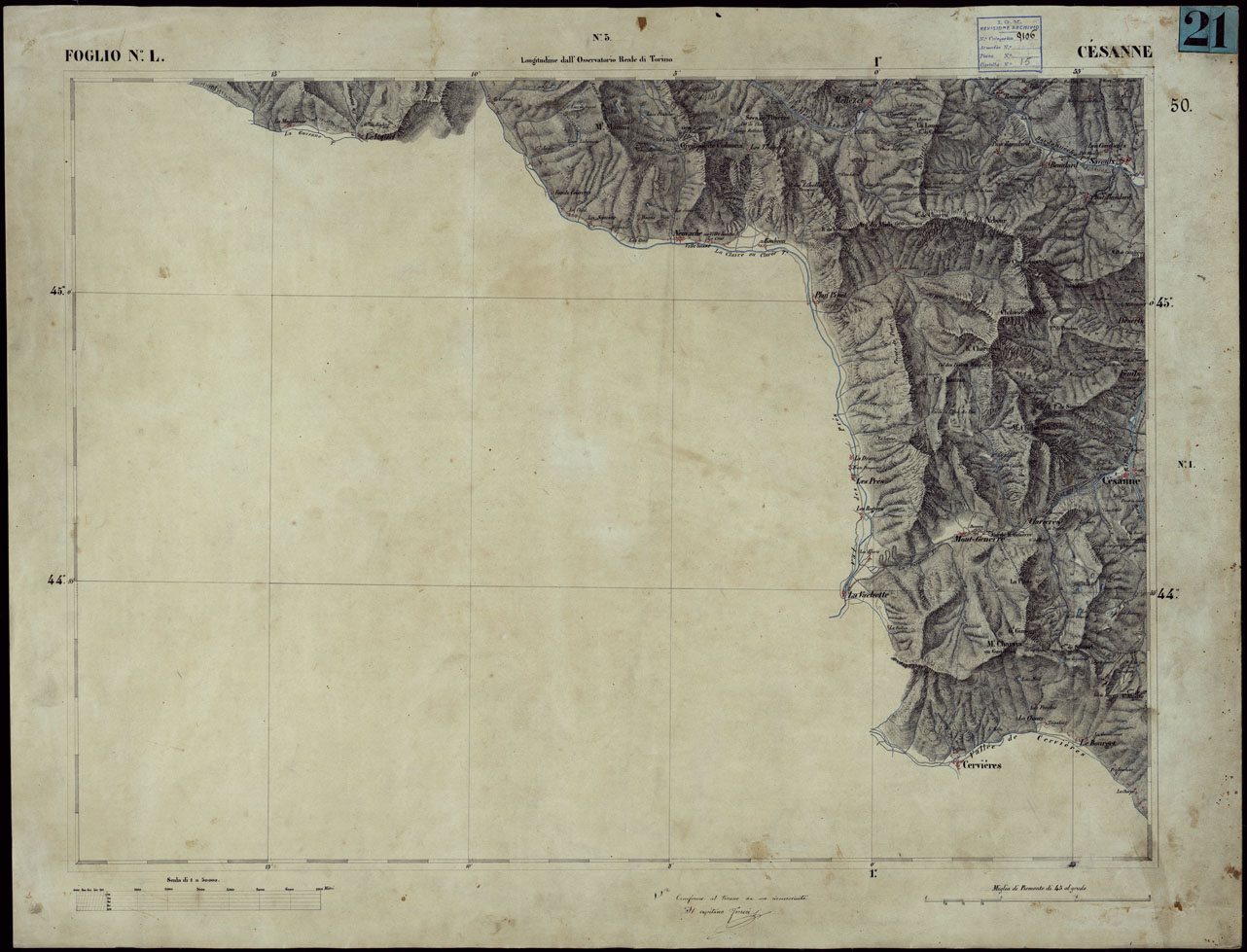 CARTA TOPOGRAFICA DEGLI STATI IN TERRAFERMA DI S.M. IL RE DI SARDEGNA ALLA SCALA DI 1 A 50.000 OPERA DEL CORPO REALE DELLO STATO MAGGIORE - FOGLIO N° L - CESANNE