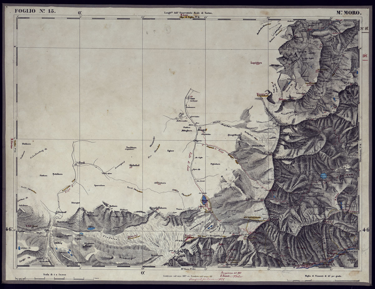 CARTA TOPOGRAFICA DEGLI STATI IN TERRAFERMA DI S.M. IL RE DI SARDEGNA ALLA SCALA DI 1 A 50.000 OPERA DEL CORPO REALE DELLO STATO MAGGIORE - FOGLIO N°15 M. MORO