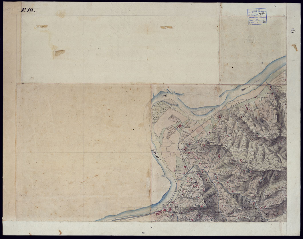 "Il titolo non è presente sulla carta. La carta consta di 24 fogli. I primi quattro fogli provengono da ridisegni mentre gli altri venti sono rilievi originali di campagna e sono in parte costituiti da spezzoni riuniti. Orografia acquerellata a luce obliqua. Qualche foglio reca la firma dei tenenti Salius, Ricci e Morozzo."
