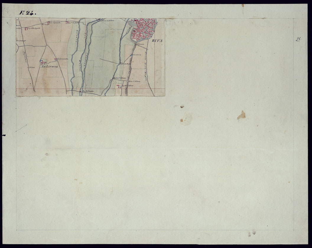 "Il titolo non è presente sulla carta. La carta consta di 24 fogli. I primi quattro fogli provengono da ridisegni mentre gli altri venti sono rilievi originali di campagna e sono in parte costituiti da spezzoni riuniti. Orografia acquerellata a luce obliqua. Qualche foglio reca la firma dei tenenti Salius, Ricci e Morozzo."