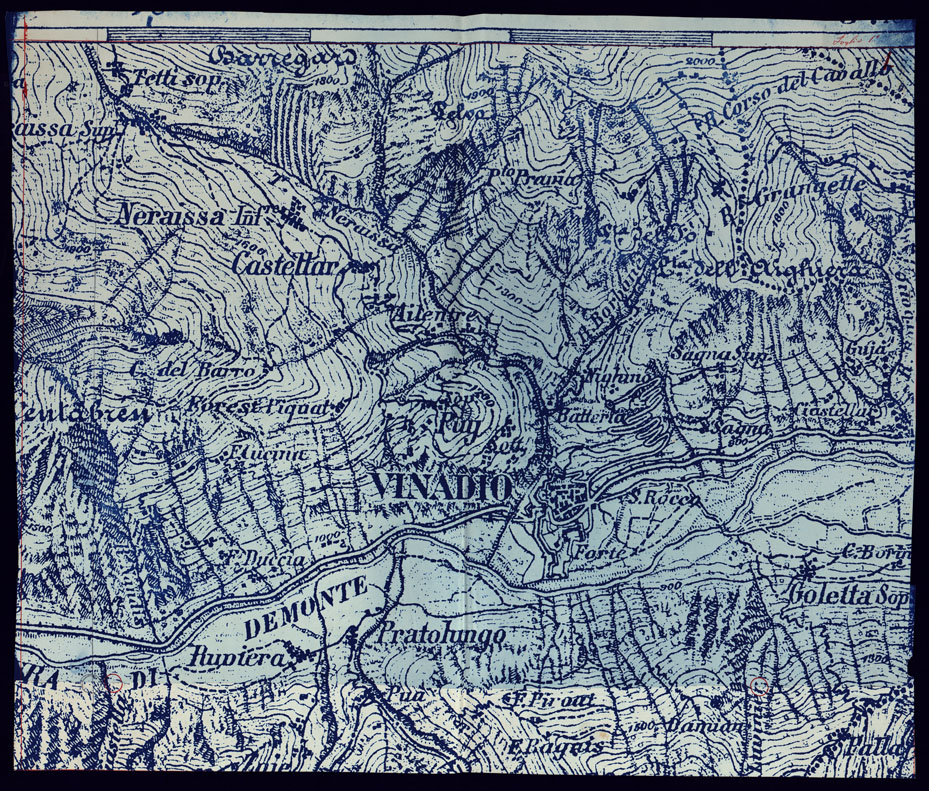 "Per il quadro d'unione vedere il "Grafico indicante gli elementi per la formazione di una carta di Vinadio e dintorni alla scala di 1:10000 che si voleva fare dal Comitato di Artiglieria e Genio"."
