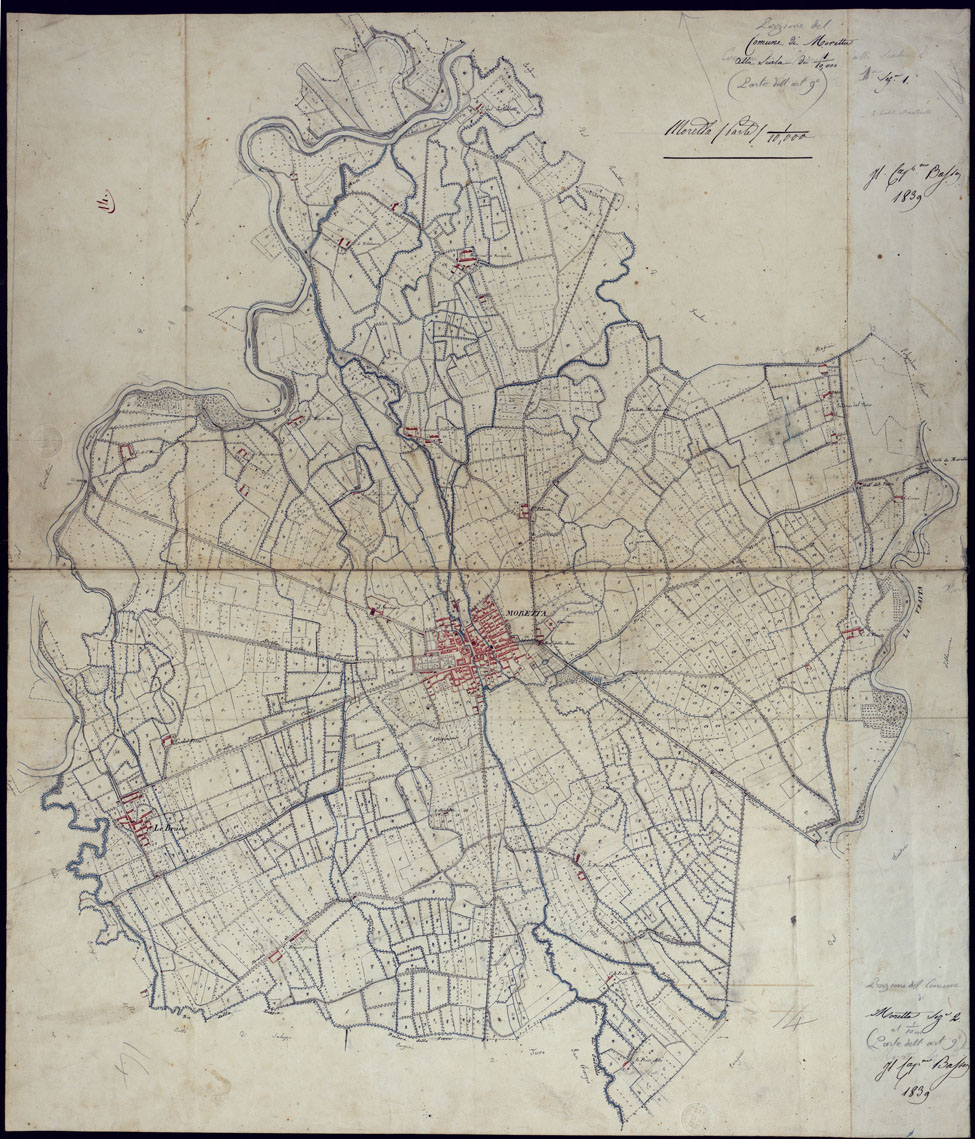 "Il titolo non è presente sulla carta. Gruppo di 16 mappe catastali riconosciute sul terreno probabilmente per la costruzione della carta degli Stati Sardi al 50.000. Alcune di esse recano le firme dei Cap.i Basso e Lafleche e del geometra Coda."