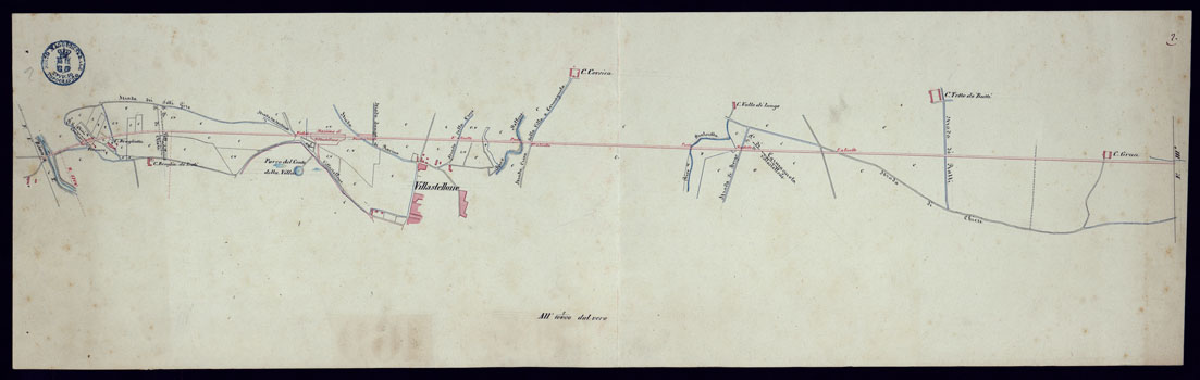 "Planimetrie di vari tronchi di ferrovia. Epoca 1851-1871. Disegni ad acquerello impiegati probabilmente per la carta generale degli Stati Sardi al 50.000."