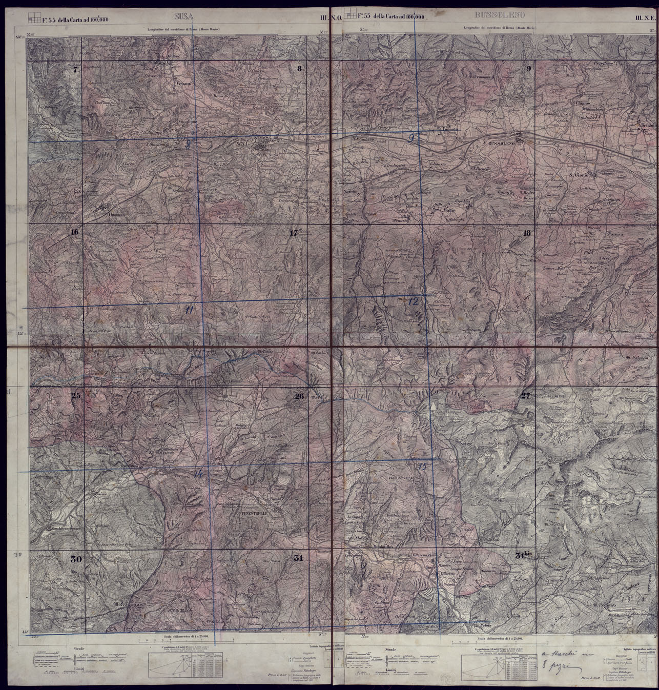 VALLI DELLA DORA RIPARIA SITUAZIONE DAL 1860 AL 1871 RILIEVI AL 10.000 - QUADRO D'UNIONE 2