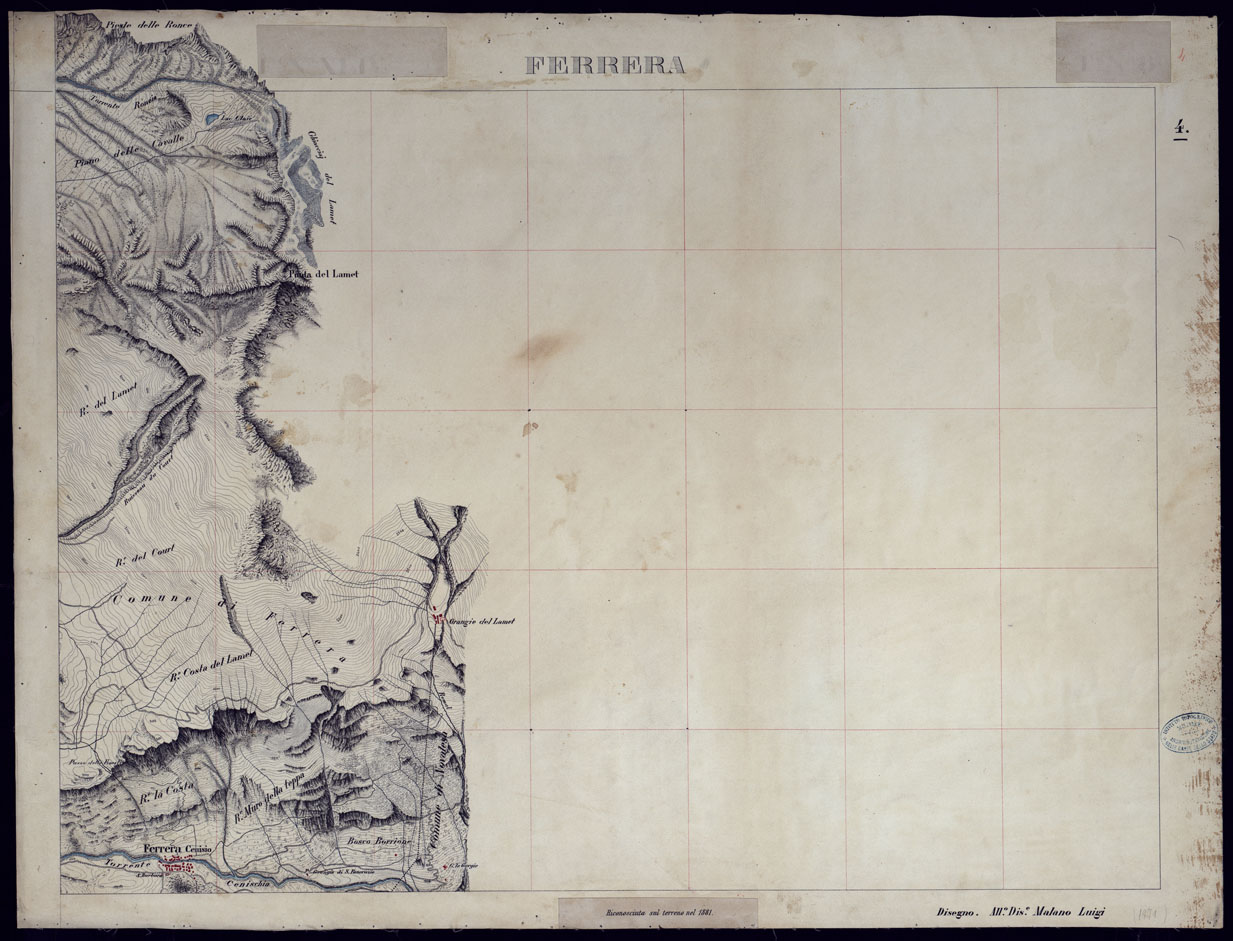 VALLI DELLA DORA RIPARIA SITUAZIONE DAL 1860 AL 1871 RILIEVI AL 10.000 FERRERA - FOGLIO 4.