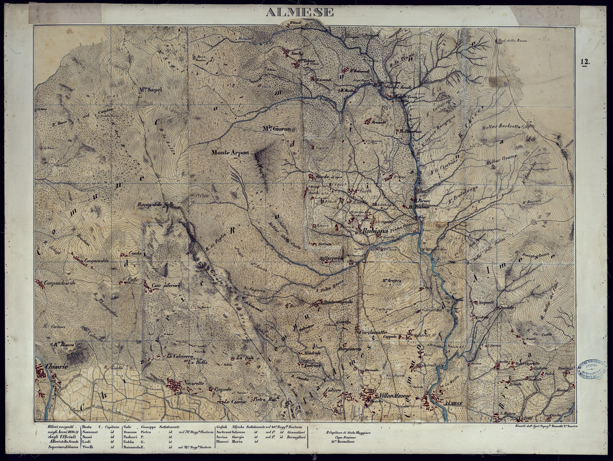VALLI DELLA DORA RIPARIA SITUAZIONE DAL 1860 AL 1871 RILIEVI 10.000 ALMESE - FOGLIO 12.