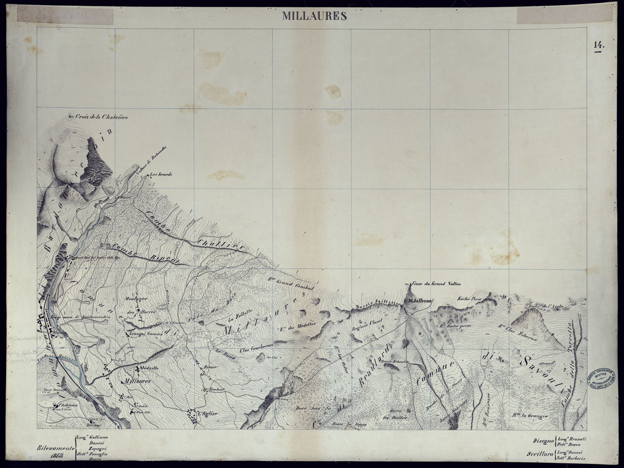VALLI DELLA DORA RIPARIA SITUAZIONE DAL 1860 AL 1871 RILIEVI AL 10.000 MILLAURES - FOGLIO 14.