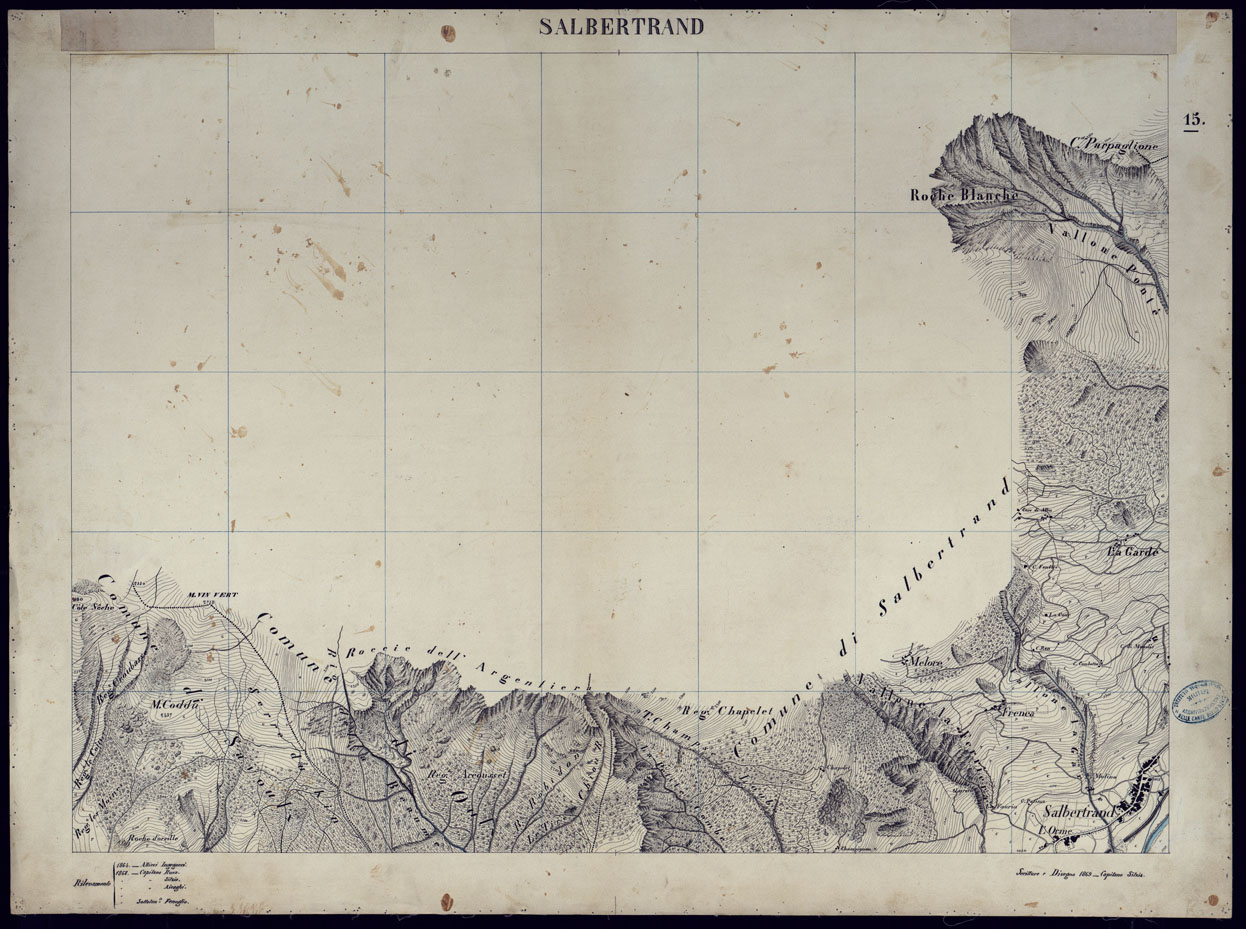 VALLI DELLA DORA RIPARIA SITUAZIONE DAL 1860 AL 1871 RILIEVI AL 10.000 SALBERTRAND - FOGLIO 15.