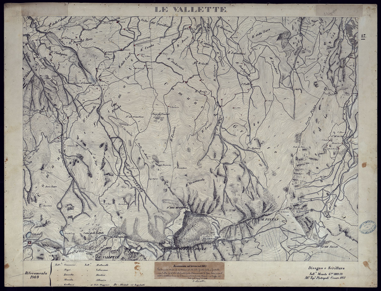 VALLI DELLA DORA RIPARIA SITUAZIONE DAL 1860 AL 1871 RILIEVI AL 10.000 LE VALLETTE - FOGLIO 17.