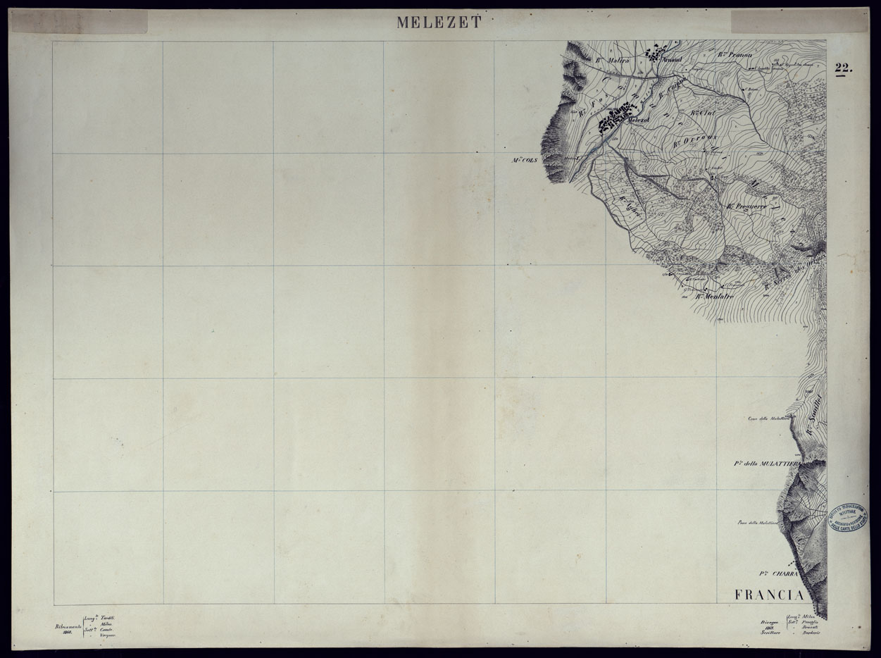 VALLI DELLA DORA RIPARIA SITUAZIONE DAL 1860 AL 1871 RILIEVI AL 10.000 MELEZET - FOGLIO 22.
