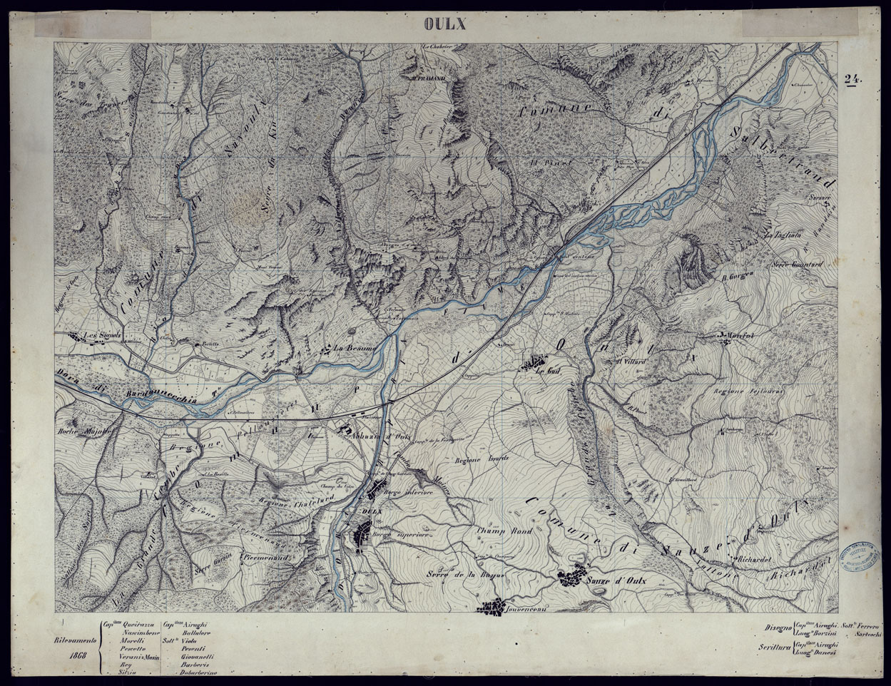 VALLI DELLA DORA RIPARIA SITUAZIONE DAL 1860 AL 1871 RILIEVI AL 10.000 OULX - Foglio 24