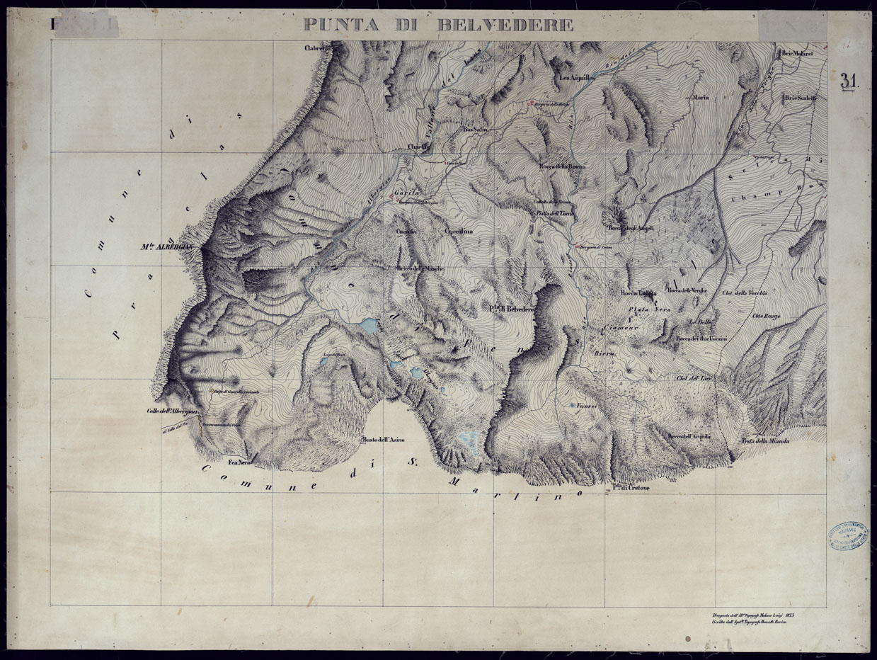 VALLI DELLA DORA RIPARIA SITUAZIONE DAL 1860 AL 1871 RILIEVI AL 10.000 PUNTA DI BELVEDERE - FOGLIO 31.