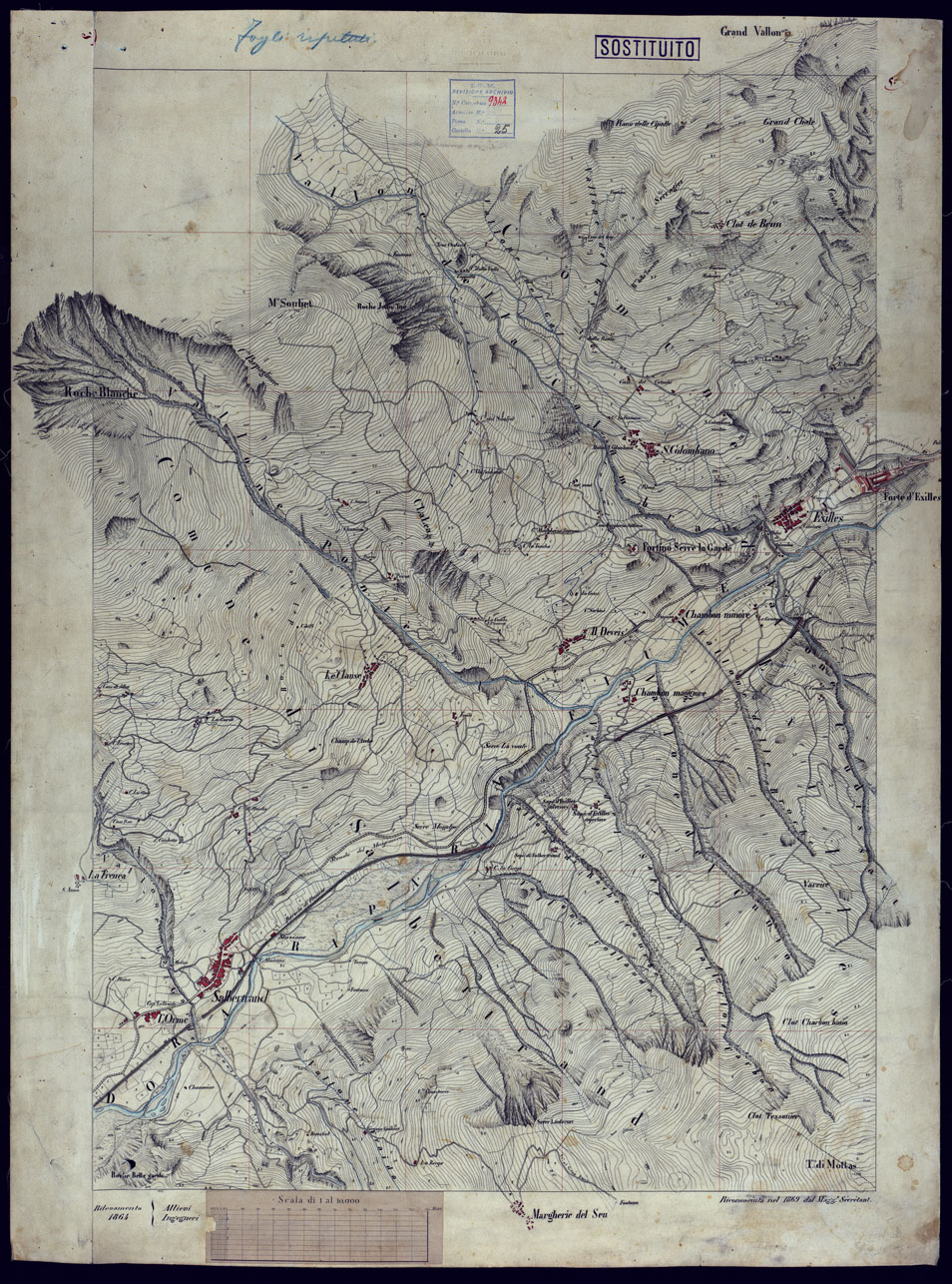 VALLI DELLA DORA RIPARIA SITUAZIONE DAL 1860 AL 1871 RILIEVI AL 10.000 EXILLES - SOSTITUTO.