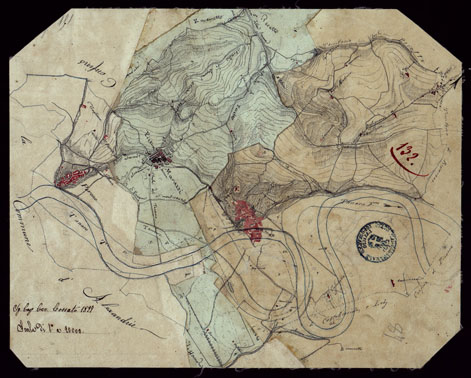 "Gruppo di 142 minute di campagna, e un quadro d'unione, in fogli irregolari, alcuni con degli spezzoni allegati, montati su tela. L'orografia vi è rappresentata variamente talvolta con curve dimostrative e tratteggio, oppure con sfumo a luce obliqua e tratteggio o con sfumo e curve dimostrative. Gli abitati sono colorati in rosso le acque in azzurro. Le minute sono firmate dagli Ufficiali del Corpo di Stato Maggiore: Albet, Bergalli, Casalegno, Castelborgo, Castellengo, Cossato, Gianotti, Mariani, Morozzo, Muletti, Pellegrini, D'Angennes, La Grange, La Marmora, Roberti, Scoti, che eseguirono le ricognizioni negli anni 1827-29."