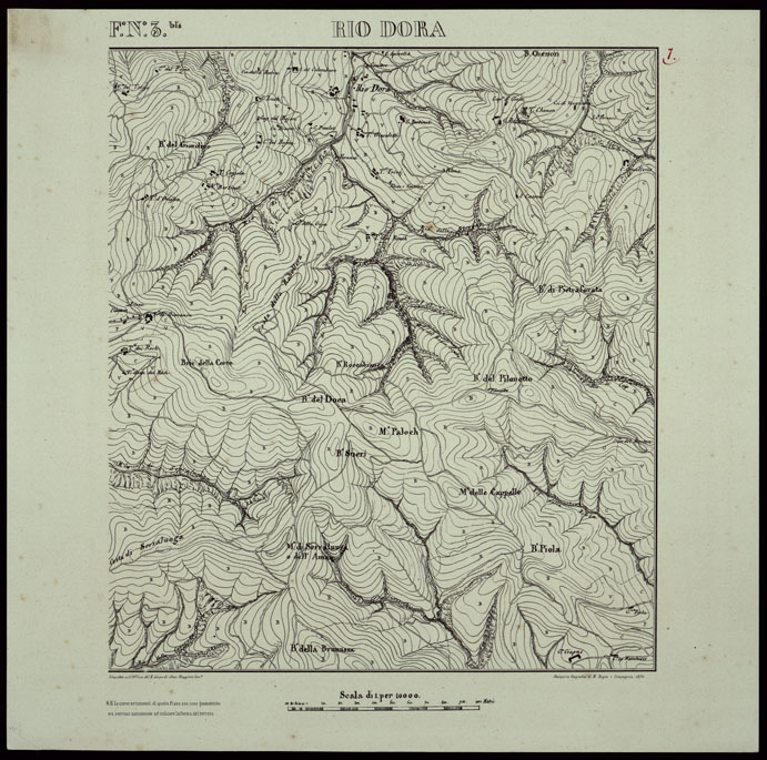 "Il documento si compone di tre esemplari, due in tredici fogli e uno in dodici, più un quadro d'unione e la copertina del documento. I fogli sono stati litografati nell'Officina del R. Corpo di Stato Maggiore Generale, stampati da M. Doyen e Comp. con orografia a curve di livello dimostrative sussidiate da tratteggio."