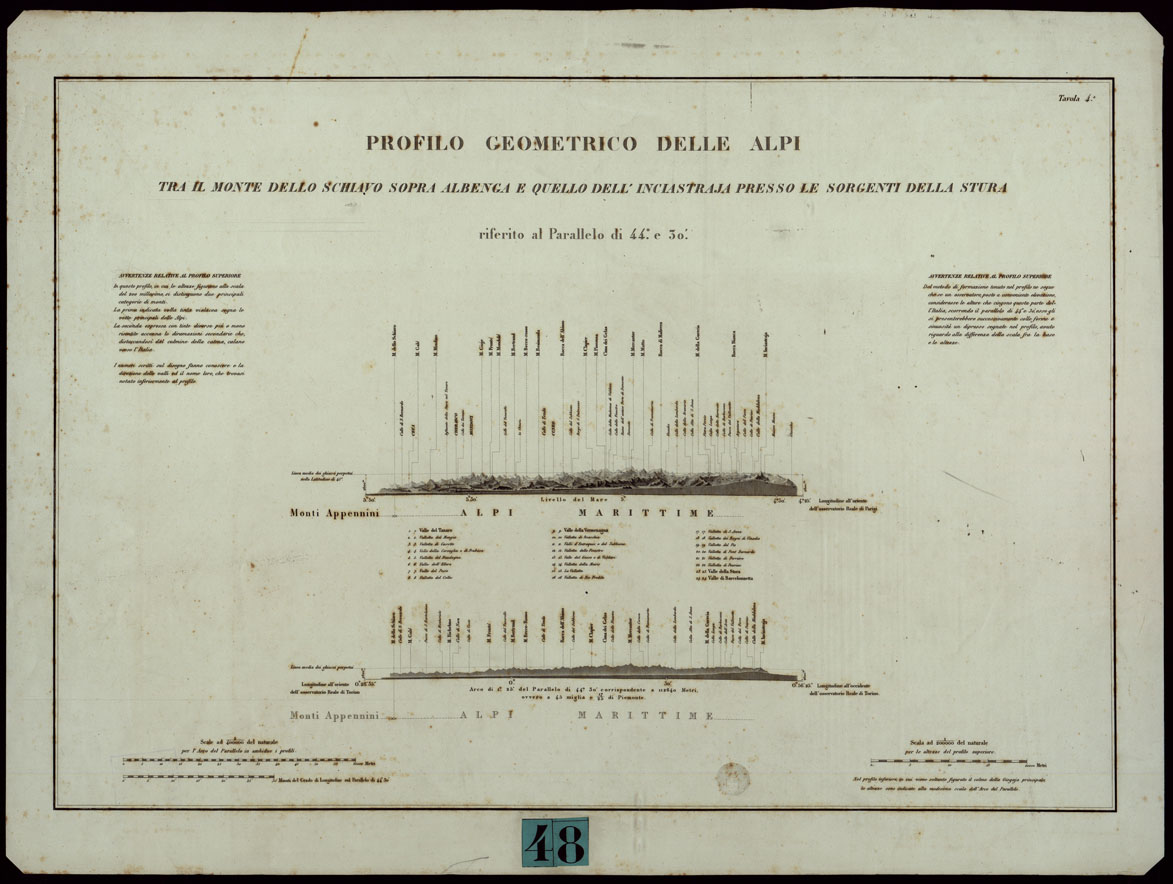 PROFILO GEOMETRICO DELLE ALPI TRA IL MONTE DELLO SCHIAVO SOPRA ALBENGA E QUELLO DELL'INCIASTRAJA PRESSO LE SORGENTI DELLA STURA RIFERITO AL PARALLELO DI 44° e 30'