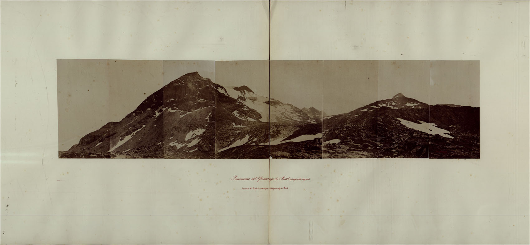 TRENTADUE PANORAMI FOTOGRAFICI ESEGUITI DAL TENENTE DI STATO MAGGIORE SIG. MANZI NEL 1876, PER STUDI SULLA FOTOTOPOGRAFIA - PANORAMA DEL GHIACCIAJO DI BART (ESEGUITO DAL LAGO) ELEMENTO N. 2 PER LA COSTRUZIONE DEL GHIACCIAJO BART.