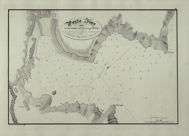 "Album contenente 24 tavole incise su pietra. L'orografia del terreno costiero è rappresentata mediante tratteggio. Gli scandagli sono calcolati in braccia di piedi francesi. Scale grafiche in tese. L'album è presentato dal Vice Amm. nella R. Marina G. Albini. Due copie."