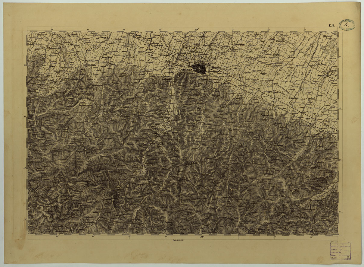 CARTA TOPOGRAFICA DELLO STATO PONTIFICIO E DAL GRAN-DUCATO DI TOSCANA COSTRUTTA SOPRA MISURE ASTRONOMICO TRIGONOMETRICHE CHE ED INCISA SOPRA PIETRA A VIENNA NELL'I.R. ISTITUTO GEOGRAFICO MILITARE PUBBLICATA NELL'ANNO 1851 - FOG. E.8