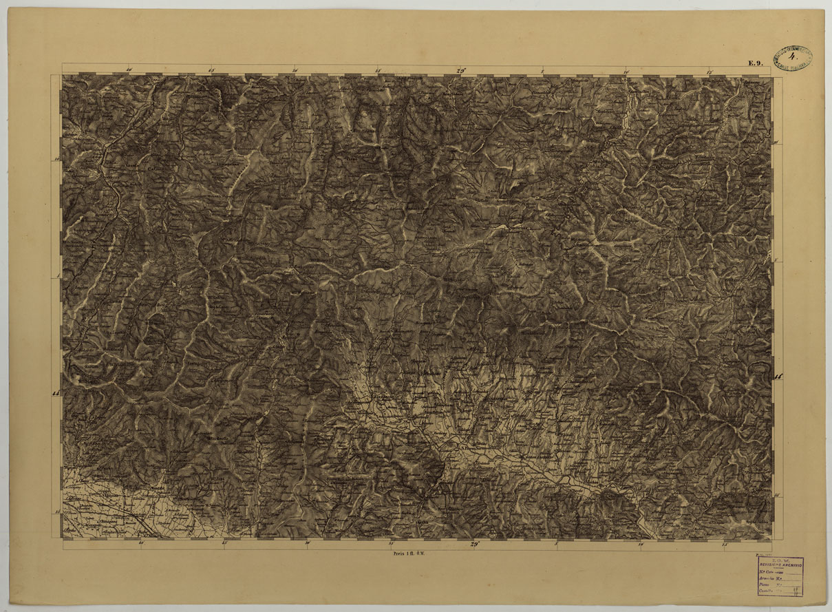 CARTA TOPOGRAFICA DELLO STATO PONTIFICIO E DAL GRAN-DUCATO DI TOSCANA COSTRUTTA SOPRA MISURE ASTRONOMICO TRIGONOMETRICHE CHE ED INCISA SOPRA PIETRA A VIENNA NELL'I.R. ISTITUTO GEOGRAFICO MILITARE PUBBLICATA NELL'ANNO 1851 - FOG. E.9
