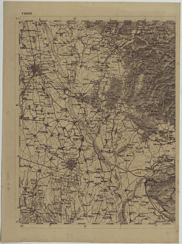 CARTA TOPOGRAFICA DELLE PROVINCIE LOMBARDO-VENETE E DEGLI EX DUCATI ALLA SCALA DI 1:86.400 1865 - FOG. H.3 UDINE