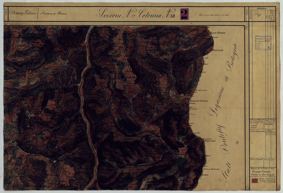 DUCATO DI MODENA E STATI LIMITROFI - SEZIONE N. 21 COLONNA N. XII - MONTOMBRARO COPIA CON CURVE DI LIVELLO