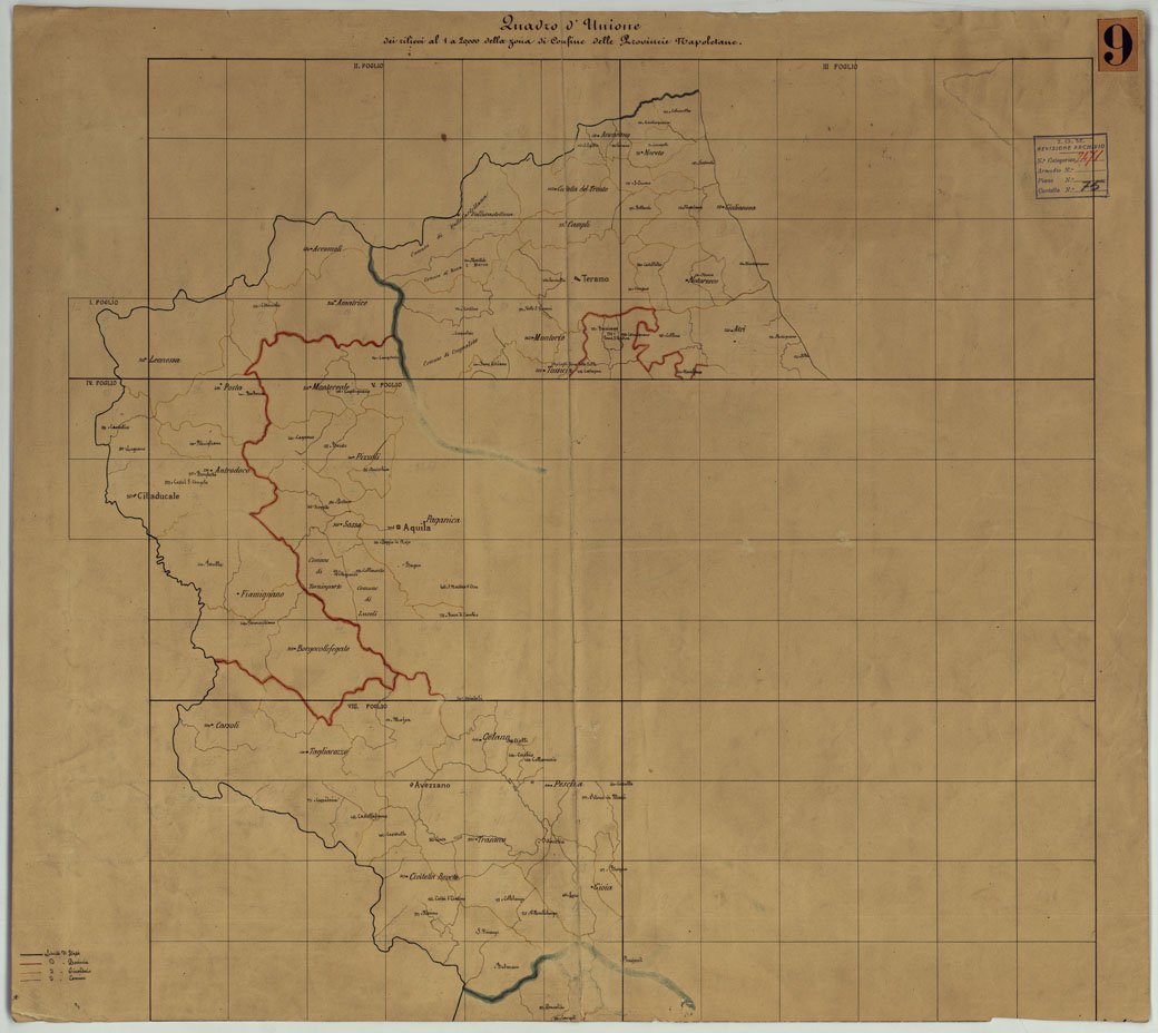 TAVOLETTE AL 20.000 PER LA CARTA DEL REGNO DI NAPOLI - QUADRO D'UNIONE DEI RILIEVI AL 1 A 20.000 DELLA ZONA DI CONFINE DELLE PROVINCE MERIDIONALI.