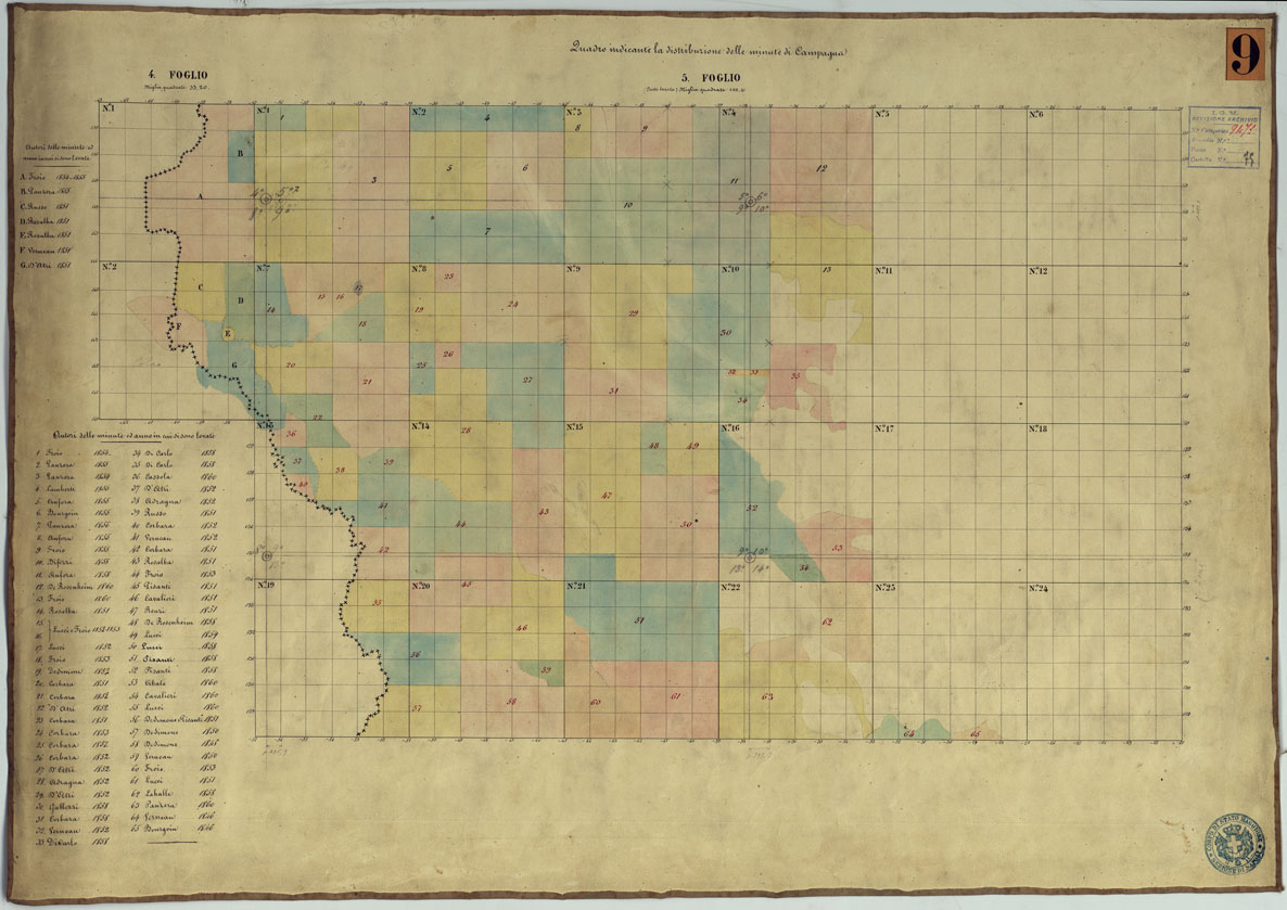 TAVOLETTE AL 20.000 PER LA CARTA DEL REGNO DI NAPOLI - QUADRO INDICANTE LA DISTRIBIZIONE DELLE MINUTE DI CAMPAGNA FOGLIO 4 E 5.