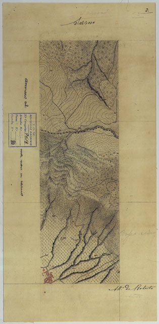 "Elementi originali che hanno servito per la formazione delle tavolette della CARTA TOPOGRAFICA DEL MONTE VESUVIO RILEVATA E DISEGNATA DAGLI ALLIEVI DELL'IST. TOPOGRAFICO MILITARE NEGLI ANNI 1875-76 ALLA SCALA DI 1:10.000 archiviata in questo stesso documento (n° d'Ordine 65 - Cart. d'Arch. 80 - Docum. 9618. Annessi lucidi d'insieme. Il titolo non è presente sulla carta. "