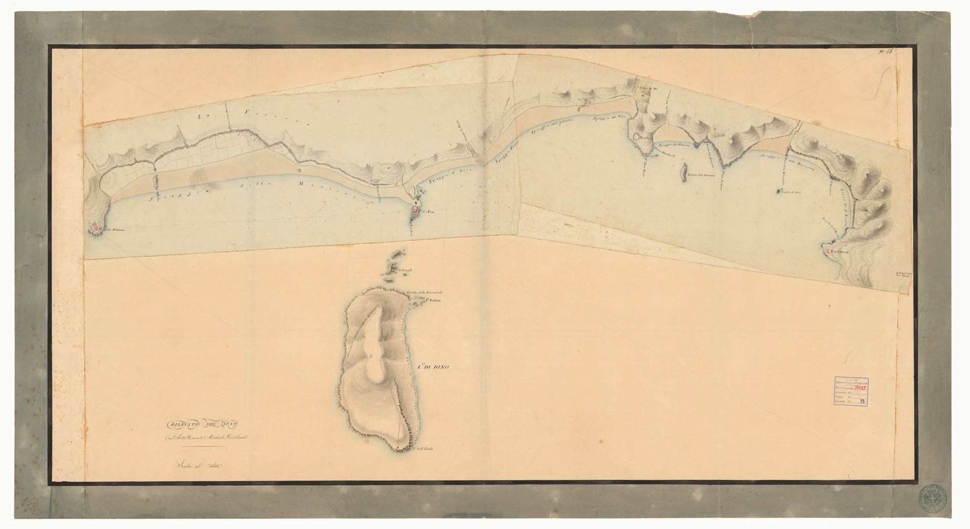 "Documento n. 53. Rilievo originale a colori, eseguito nel 1819 dal S. T. Michele Cristiani, con orografia a tratteggio."