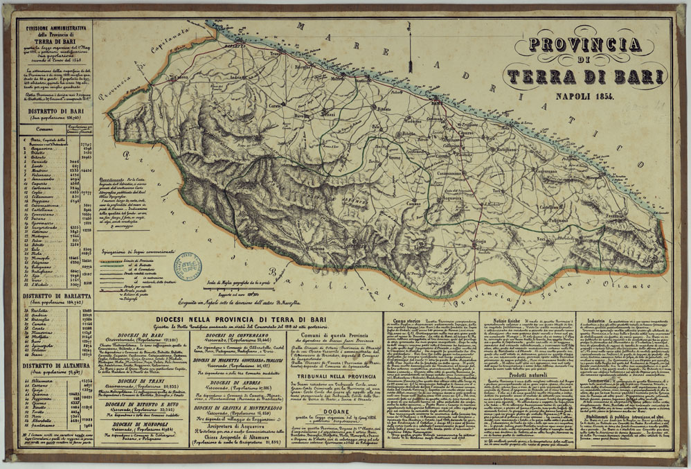 CARTA AMMINISTRATIVA DEL REGNO DELLE DUE SICILIE DIVISA IN SINGOLE PROVINCIE - PROVINCIA DI TERRA DI BARI.