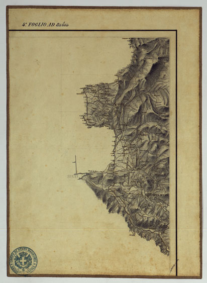 "Otto fogli pubblicati dal 1839 al 1875, parte dal Reale Officio Topografico di Napoli, alcuni dall ' Ufficio Superiore dello Stato Maggiore, Sezione di Napoli, uno dall ' Istituto Topografico Militare taluni sono incompleti. Essi sono gli unici fogli iniziati della progettata carta del Regno di Napoli all'80.000 (v. N° 43 d ' ordine, Cart. d ' Arch. N.i. 77-80. Docum. N° 9). L'orografia vi è rappresentata col tratteggio a luce obliqua con aggiunta delle curve di livello tracciate all'equidistanza di 10 passi. Annessi frammenti della carta originale disegnati per i fogli I e IV. La copia N° 79 d'inv. gen., di appartenenza alla Biblioteca, consta dei fogli, in duplicato N.i. 1, 2, 3 (Gaeta, Caserta, Napoli) pubblicati dal Reale Officio Topografico rispettivamente nel 1858, 1875 e 1839. In questo documento sono presenti tre fogli con titolo Foglio 4 per per differenziare e per facilitare la ricerca sono state inserite le lettere a,b,c. "