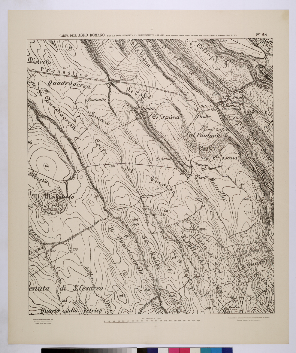 CARTA DELL'AGRO ROMANO NEL RAPPORTO DI 1:8.000 PER LA ZONA SOGGETTA AL BONIFICAMENTO AGRARIO AGLI EFFETTI DELLE LEGGI RIUNITE IN TESTO UNICO CON R.D. 10 NOVEMBRE 1905 N°647 - FOGLIO 54.