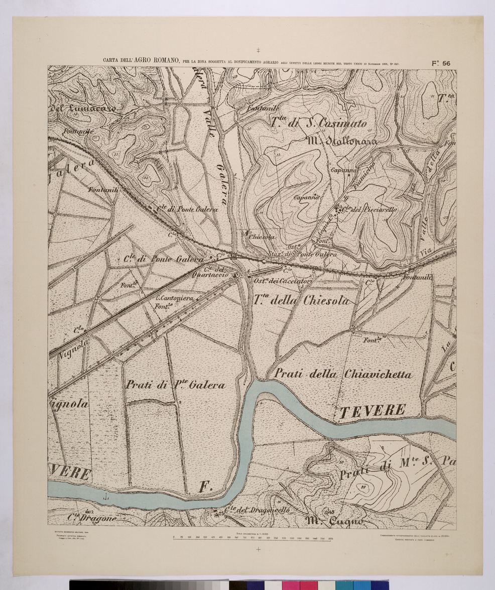 CARTA DELL'AGRO ROMANO NEL RAPPORTO DI 1:8.000 PER LA ZONA SOGGETTA AL BONIFICAMENTO AGRARIO AGLI EFFETTI DELLE LEGGI RIUNITE IN TESTO UNICO CON R.D. 10 NOVEMBRE 1905 N°647 - FOGLIO 56.