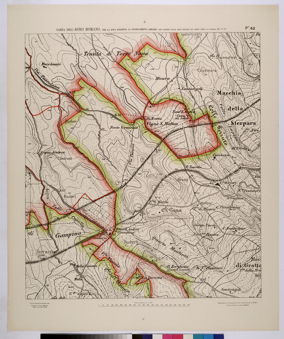 CARTA DELL'AGRO ROMANO NEL RAPPORTO DI 1:8.000 PER LA ZONA SOGGETTA AL BONIFICAMENTO AGRARIO AGLI EFFETTI DELLE LEGGI RIUNITE IN TESTO UNICO CON R.D. 10 NOVEMBRE 1905 N°647 - FOGLIO 62.