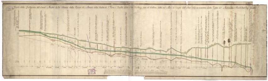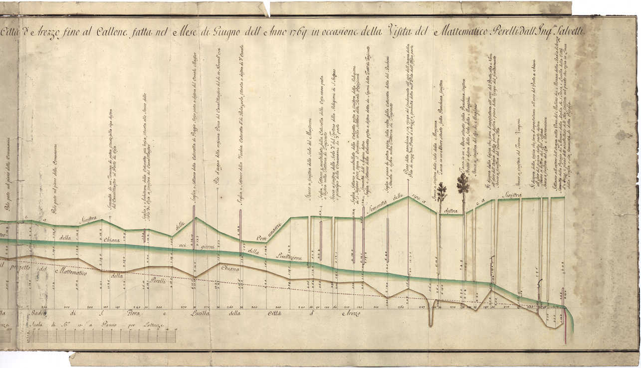 " FATTA NEL MESE DI GIUGNO DELL'ANNO 1769 IN OCCASIONE DELLA VISITA DEL MATEMATICO PERELLI DALL'ING. SALVETTI. Profilo manoscritto annesso alla relazione della visita compiuta nel 1769 dal matematico Perelli."