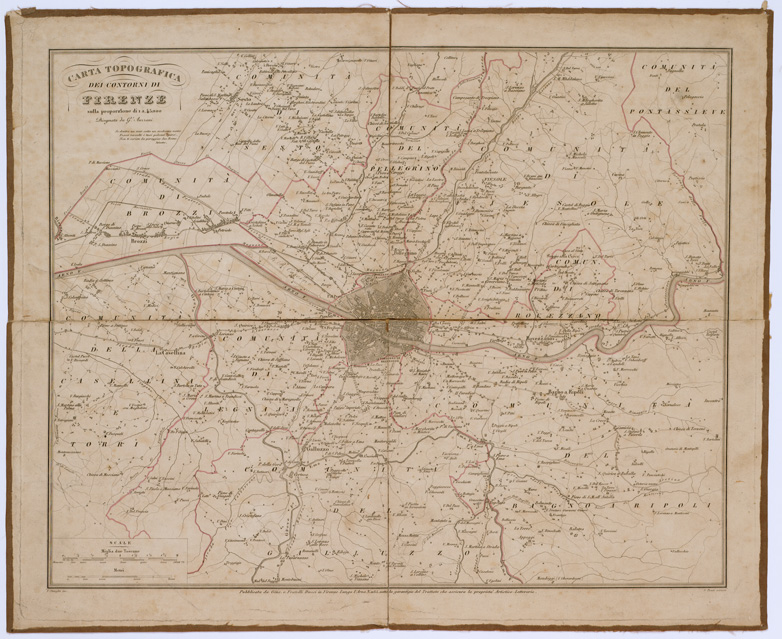 CARTA COROGRAFICA DEI CONTORNI DI FIRENZE NELLA PROPORZIONE DI 1 A 45.000. DISEGNATA DA G. AUZZANI. PUBBLICATA DA GIUS. E FRATELLI DUCCI IN FIRENZE, ecc. - Copia originale - Pasqui n. 22