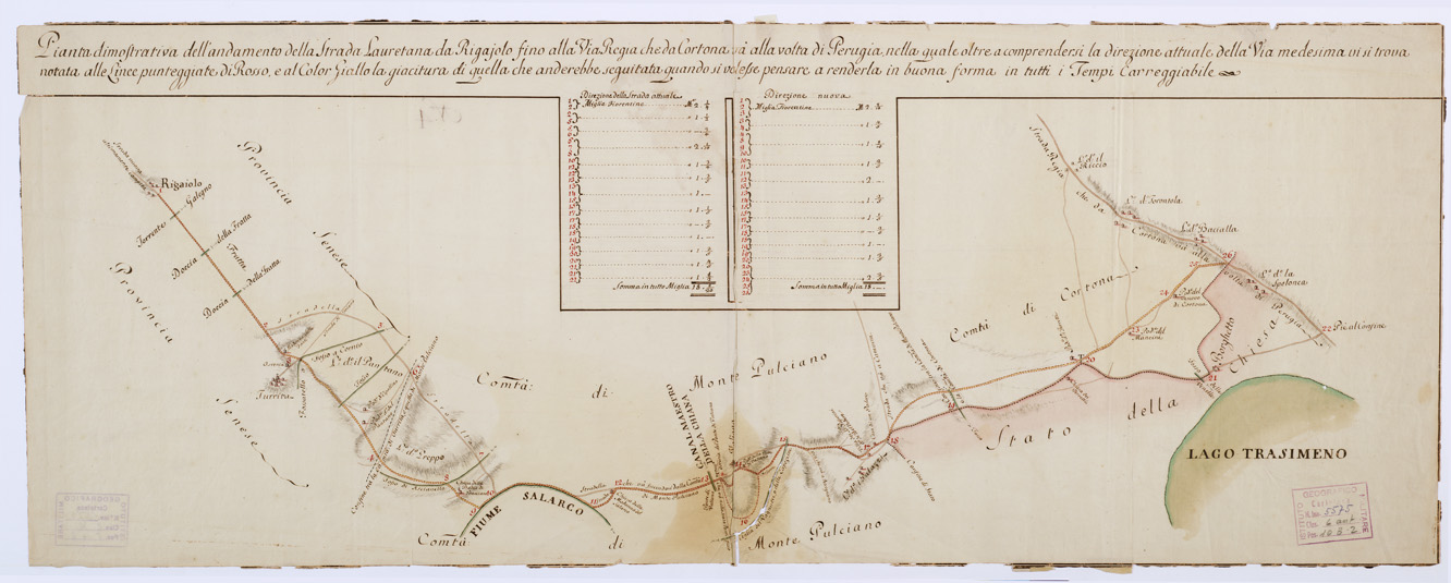 PIANTA DIMOSTRATIVA DELL'ANDAMENTO DELLA STRADA LAURENTANA DA RIGAIOLO FINO ALLA VIA REGIA CHE DA CORTONA VA ALLA VOLTA DI PERUGIA