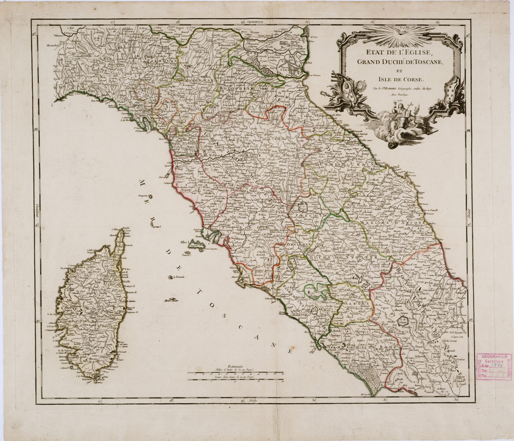 CARTE DE L'ETAT DE L'EGLISE DU GRAND DUCHE DE TOSCANE ET DE L'ISLE DE CORSE - Toscana, Lazio, Emilia Romagna, Marche, Abruzzo, Umbria, Corsica