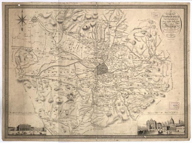 CARTA TOPOGRAFICA DEI CONTORNI A DIECI MIGLIA DELLA CITTA' DI FIRENZE - Disegnata da Girolamo Ermirio, incisa da G. Canacci, scritta da Gaetano Giarre'. Firenze presso Niccolo' Pagni.