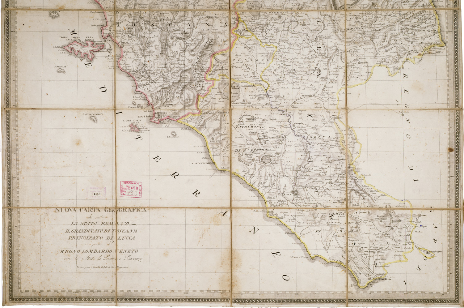 NUOVA CARTA GEOGRAFICA CHE CONTIENE LO STATO ROMANO IL GRANDUCATO DI TOSCANA PRINCIPATO DI LUCCA E PARTE DEL REGNO LOMBARDO CON LI STATI DI PARMA E PIACENZA