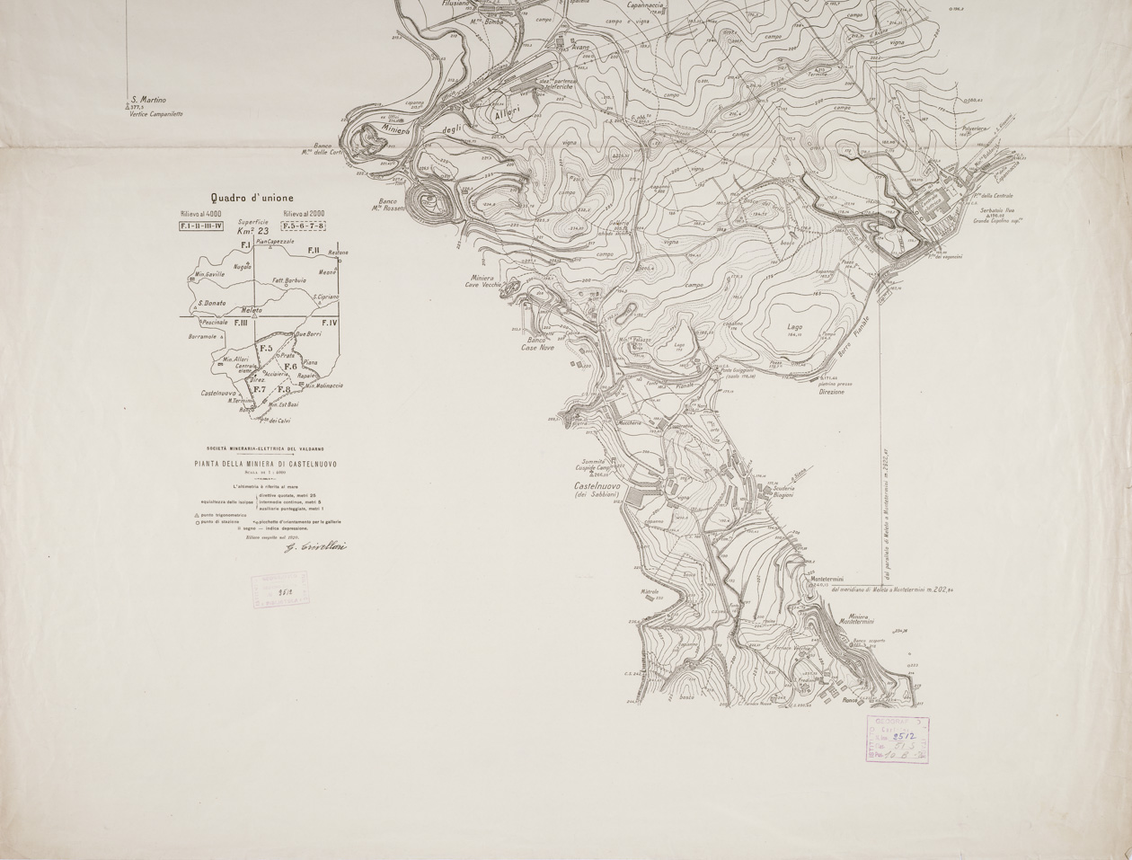 PIANTA DELLA MINIERA DI CASTELNUOVO SOCIETA' ELETTRICA DEL VALDARNO. I.G.M. - Foglio III
