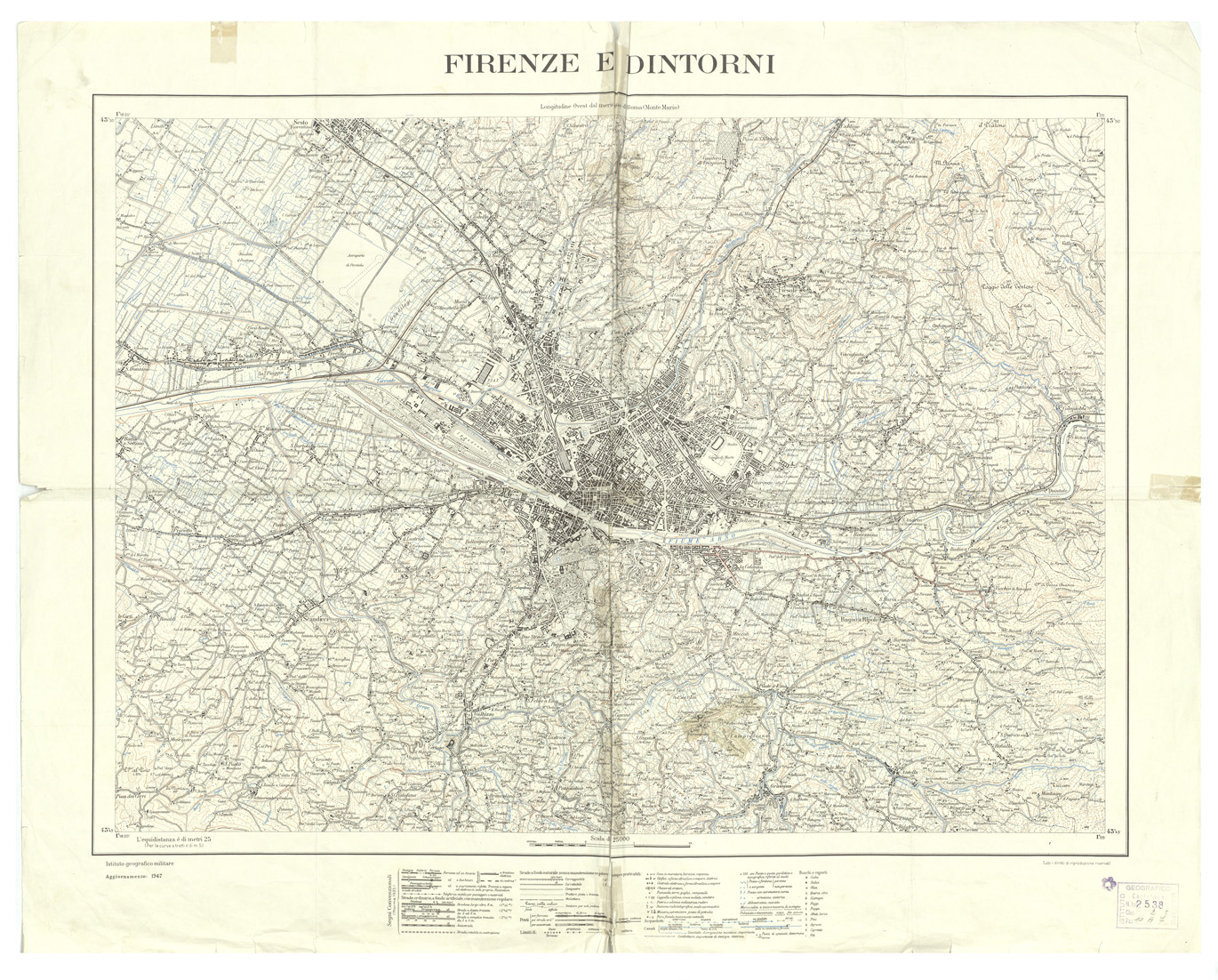 "Curve di livello con equidistanza di 25 metri. In basso i segni convenzionali. I.G.M. (FI)."