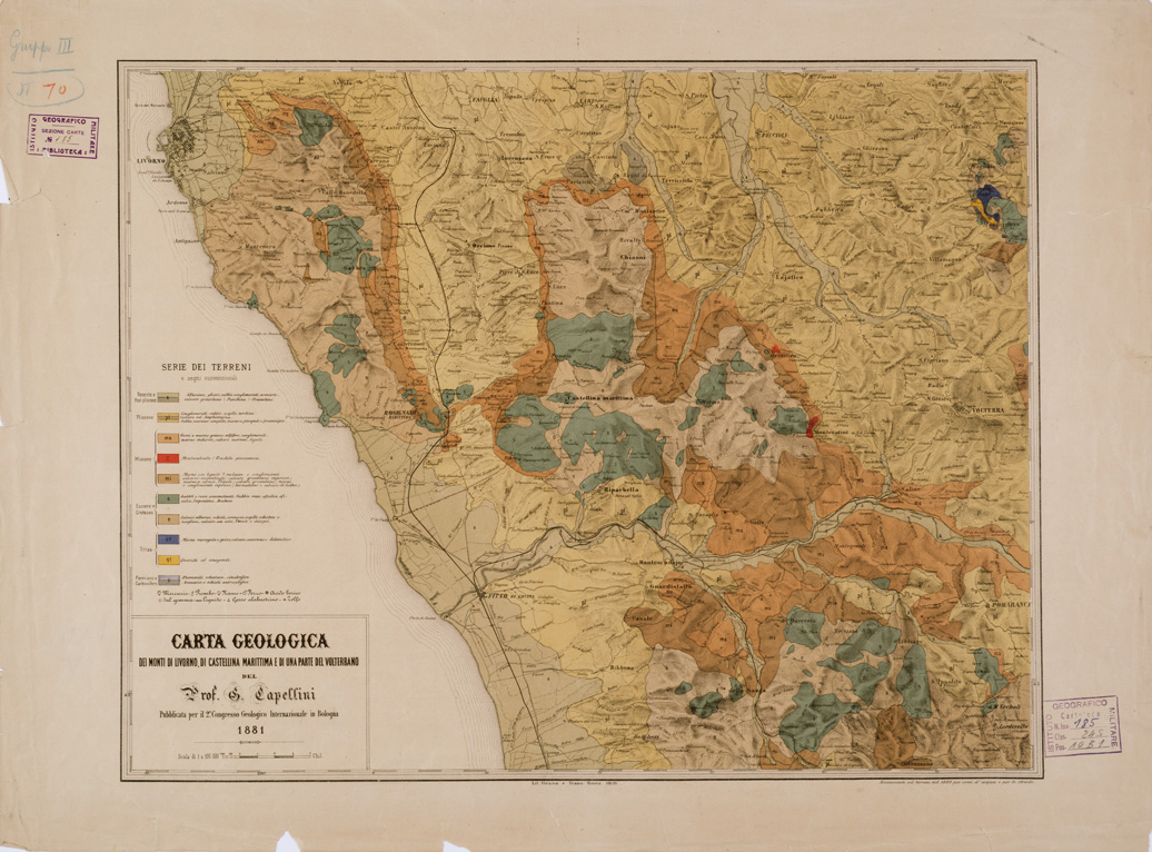 CARTA GEOLOGICA DEI MONTI DI LIVORNO DI CASTELLINA MARITTIMA E DI UNA PARTE DEL VOLTERRANO.
