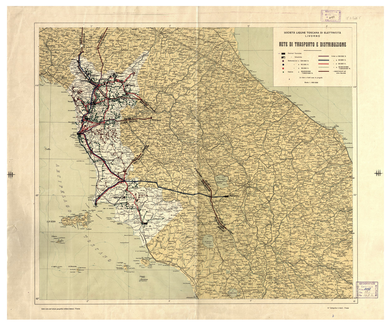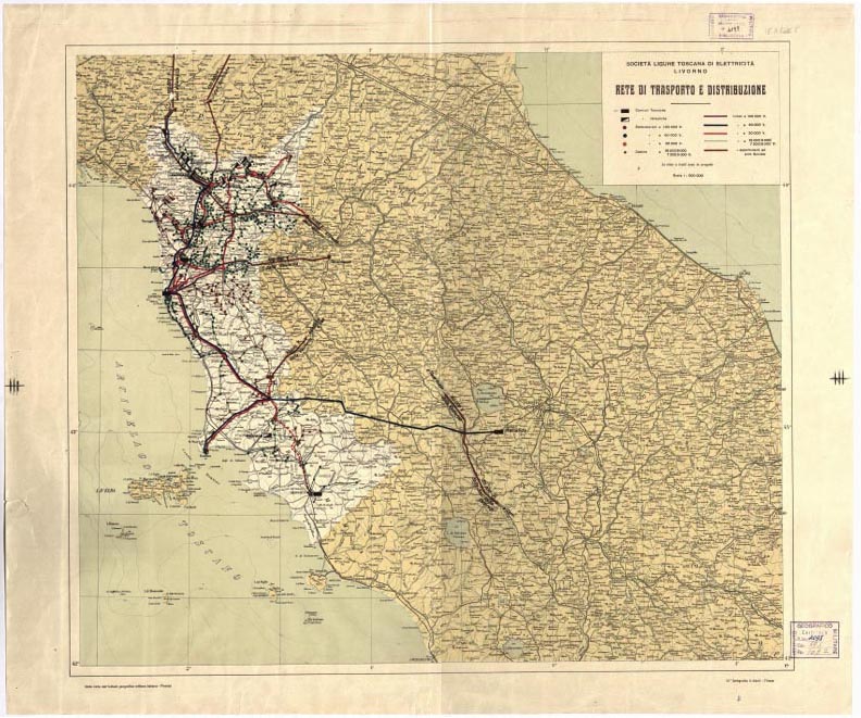 CARTA DELLE LINEE DELLA SOCIETA' LIGURE TOSCANA DI ELETTRICITA' - LIVORNO RETE DI TRASPORTO E DISTRIBUZIONE