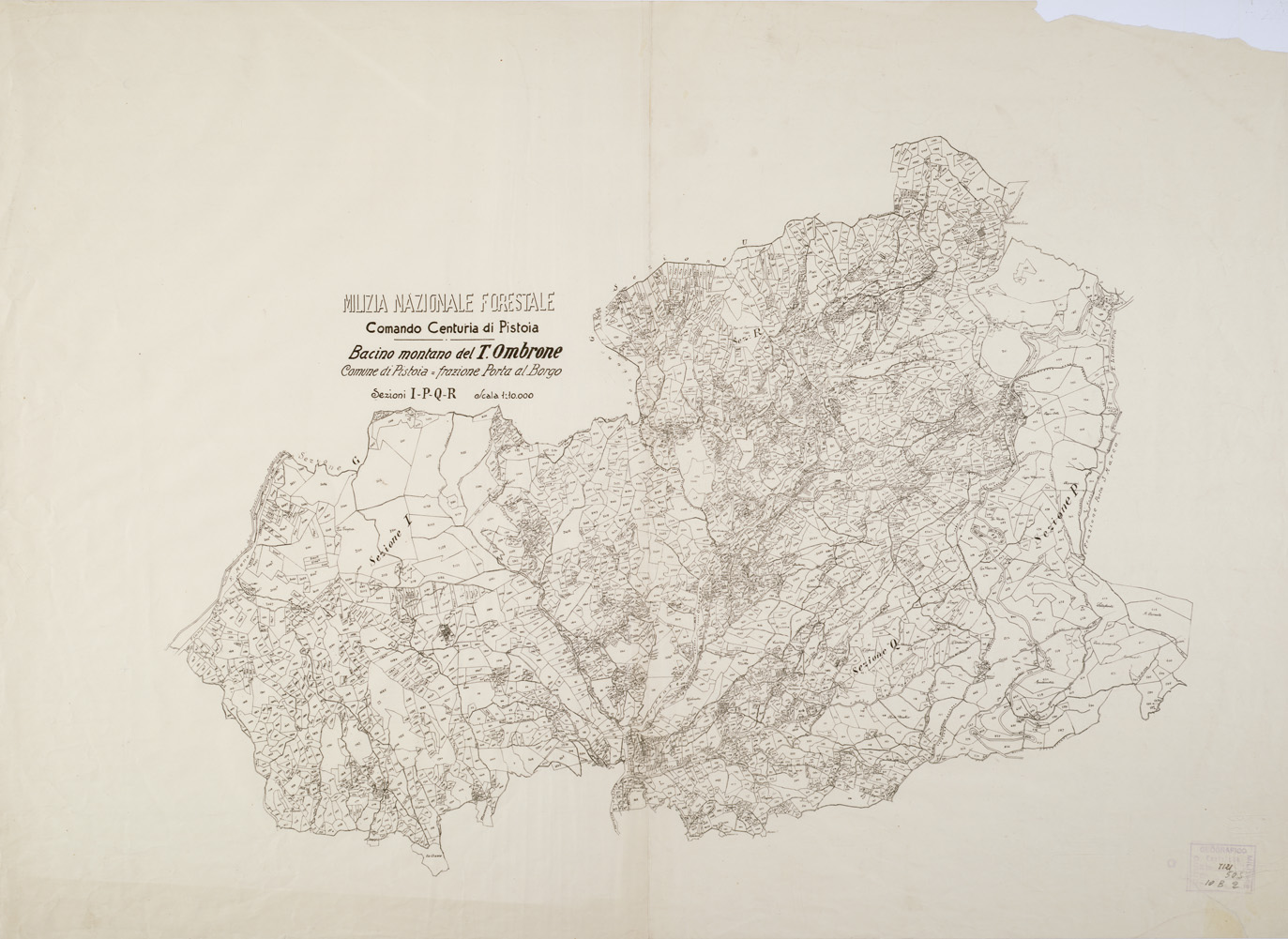 "Rappresentazione orografica planimetrica. Milizia Nazionale Forestale Comando Centuria di Pistoia."